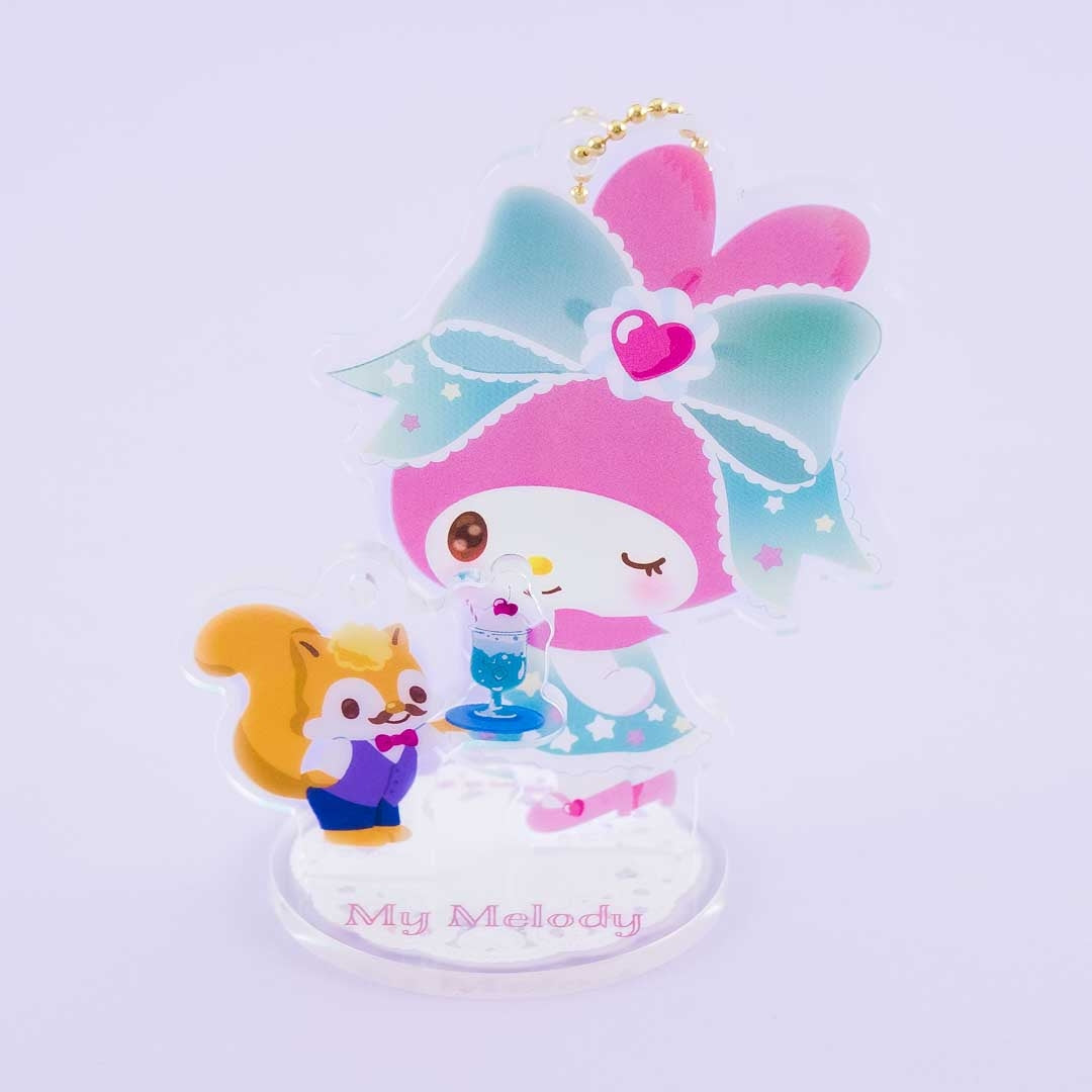 Decorate your desk with this super kawaii acrylic stand set featuring My Melody and a cute chipmunk server carrying soda. You need to assemble this stand set before you can use it as a decor! It also comes with a removable ball chain.