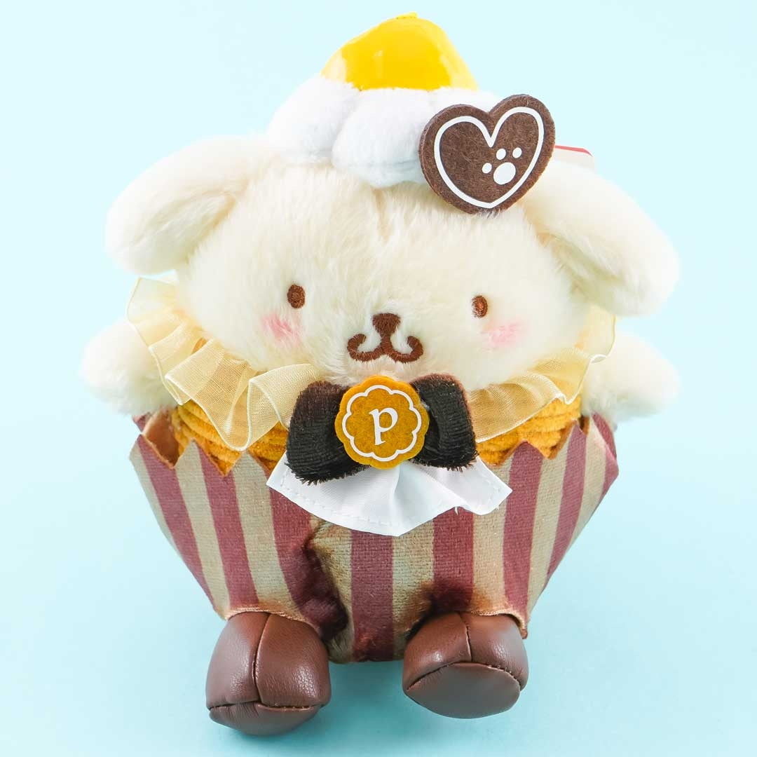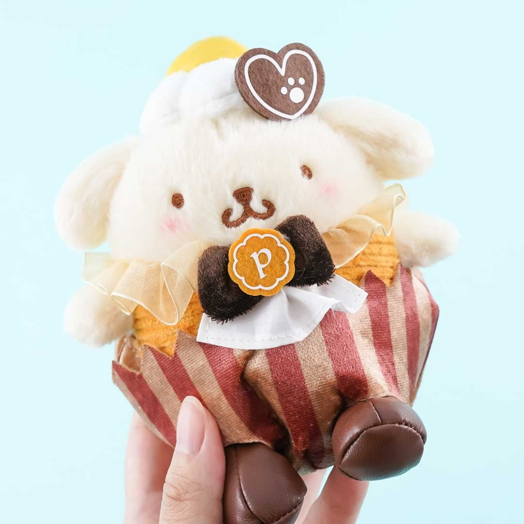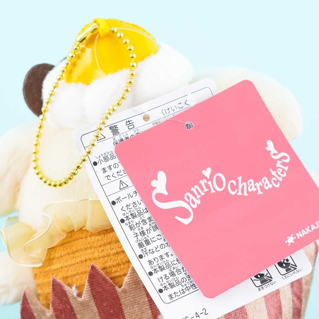 Head outside together with this super kawaii Pompompurin plushie! This medium-sized cutie has transformed himself into a cupcake. It comes from the "Sanrio Characters Sweets" series. You can attach it to your favorite bag with its detachable ball chain.