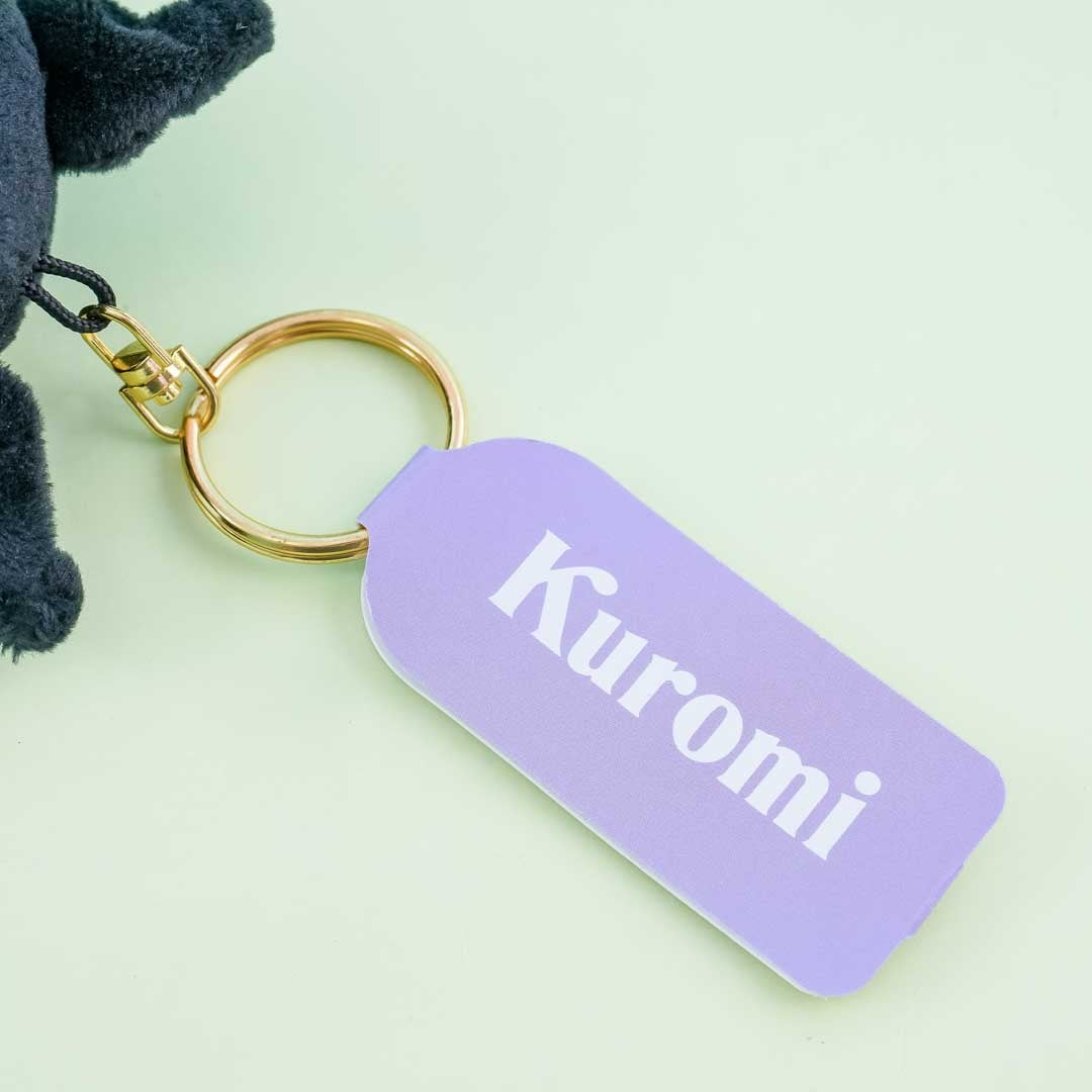 This kawaii Kuromi medium-sized plushie can be used as a keychain. It features a letter initial and comes with a metal ring to organize your house keys. You'll receive a random alpha character when you order.