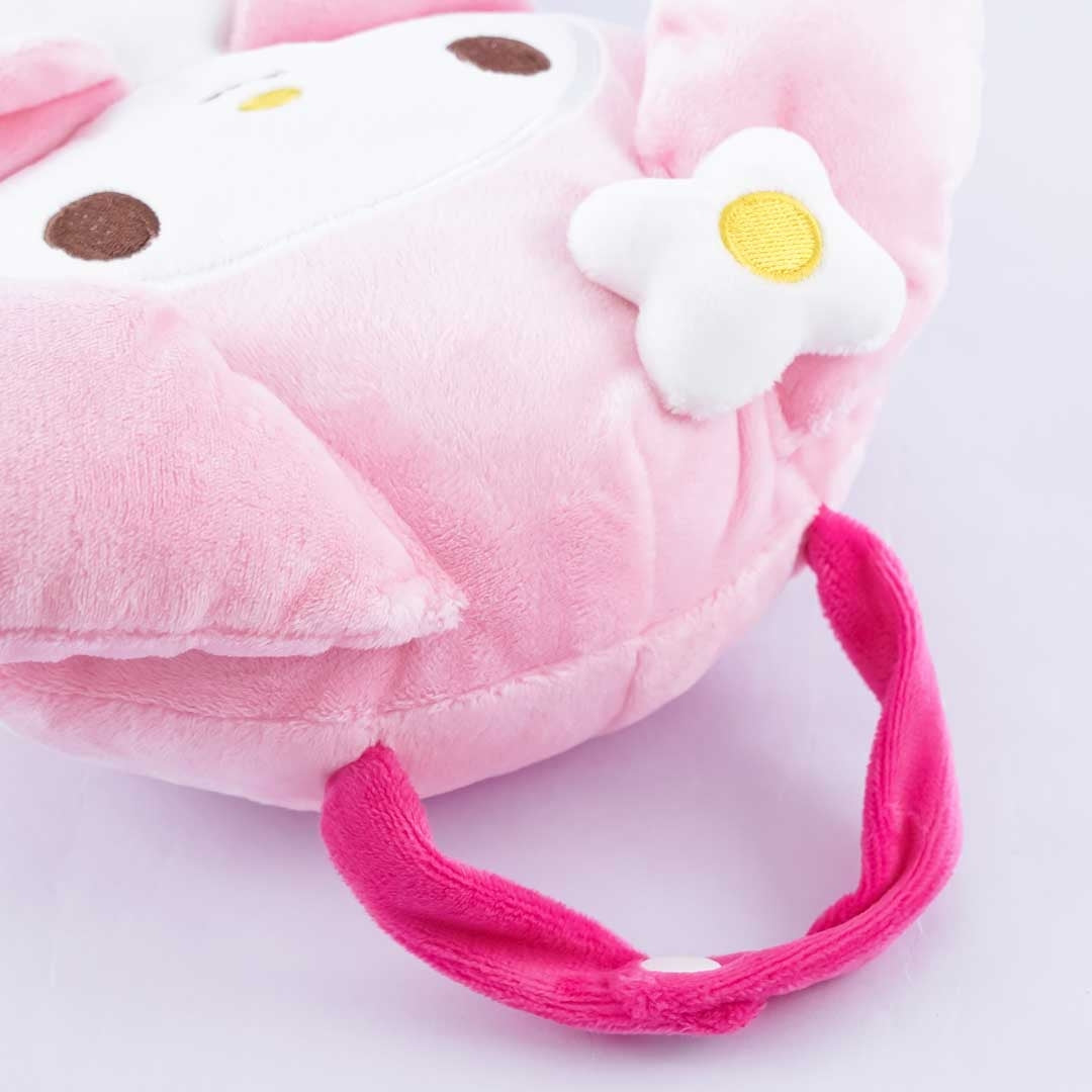 This multi-purpose My Melody case is as soft as a plushie! Use this to store your reusable totes, face masks, and tissues. It has a cloth loop with a snap button so you can hang it anywhere in your home. The fluffy case also has a back slot so you can easily stuff your items and a front slot for tissue dispensing.