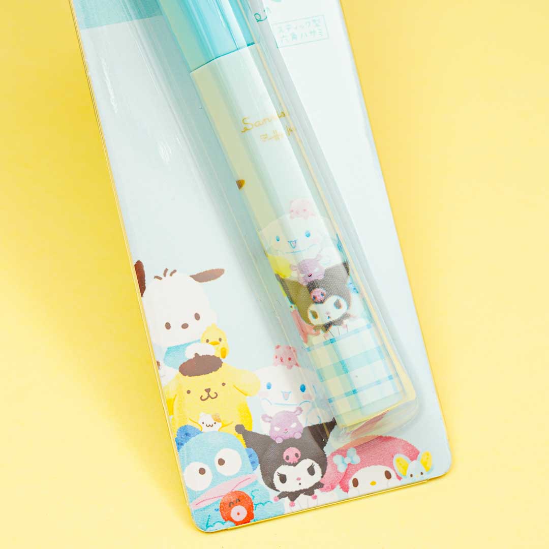Cut up papercrafts with this cute pair of stick scissors illustrated with Sanrio characters! It features a compact design with a cap for safety and a holder clip.