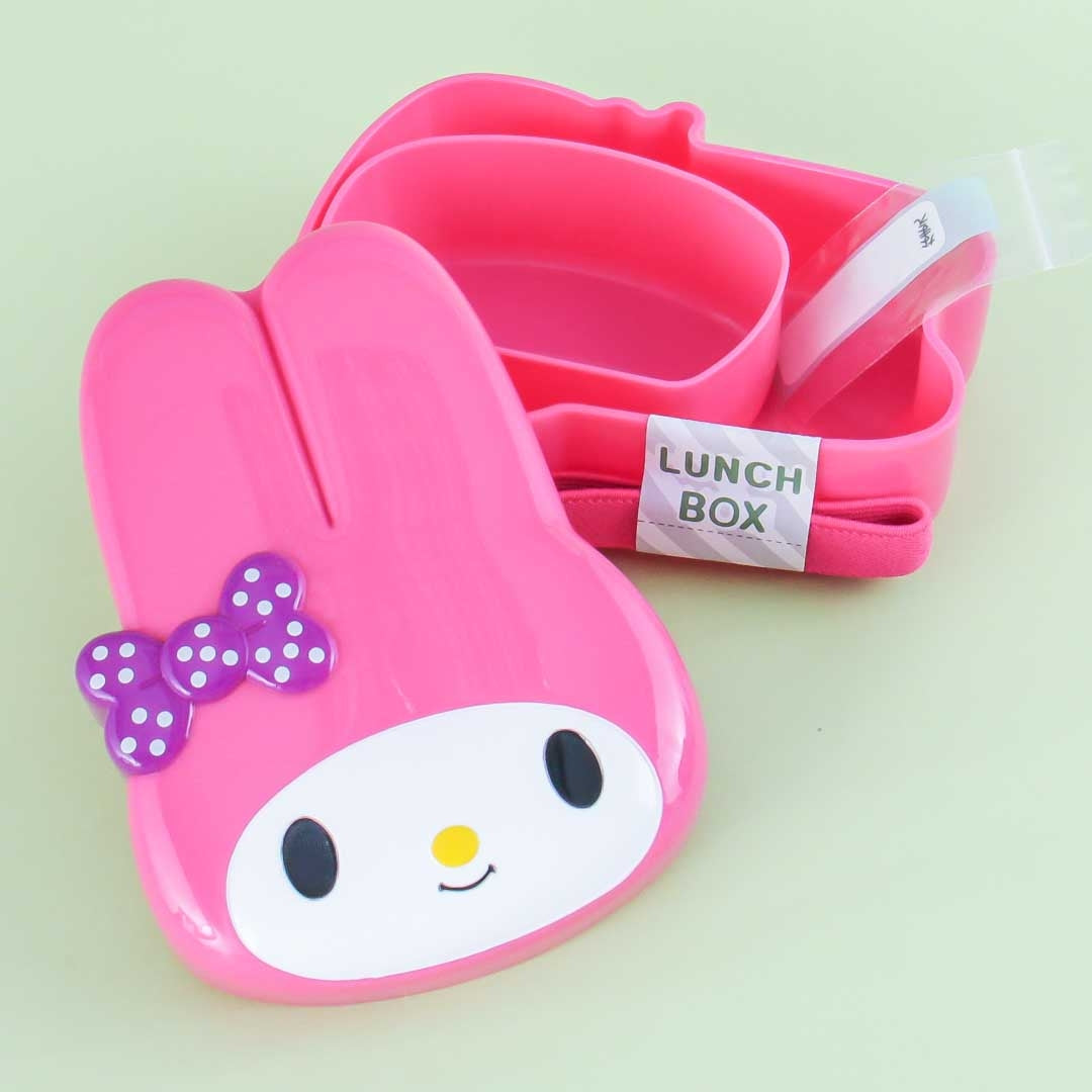This super kawaii die-cut lunch box is shaped like My Melody's head! It comes with a small separate container and a strap band to secure your meal. Take out the lid to microwave your food.