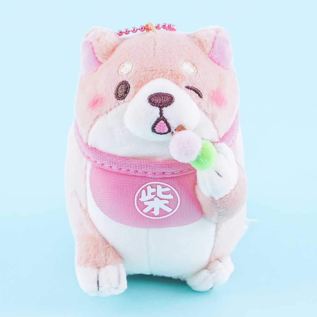 Add this super kawaii Sakura plushie to your Chuken Mochi Shiba collection! This medium-sized polyester cutie is eating some dango or Japanese dumplings. It comes with a detachable ball chain so you can hang it on your favorite bag.