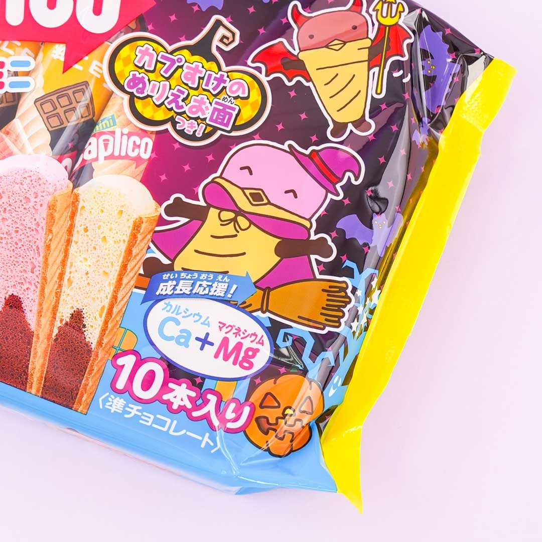 Break out this Halloween-themed pack of ice cream cone snacks at your spooky party! Each piece has a crispy cone layer with filling that's flavored like chocolate, strawberry, or milk.