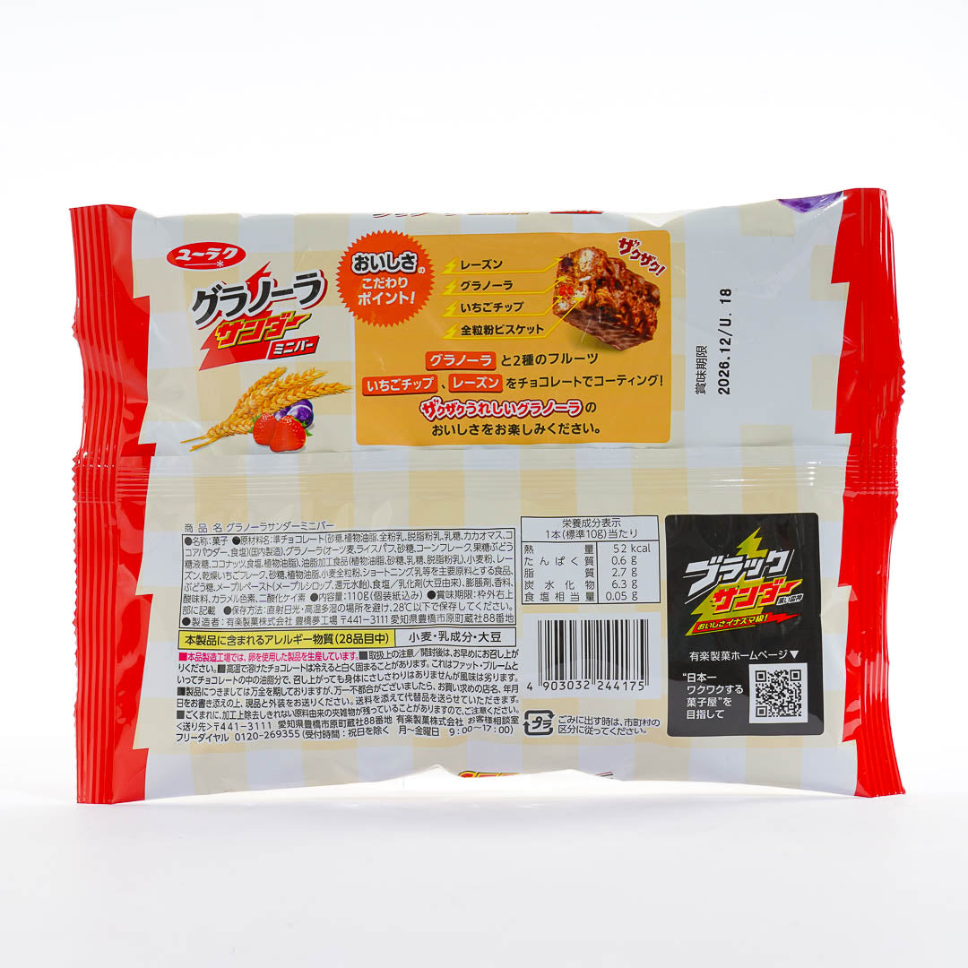 Looking for a snack that’s a little more filling? These granola chocolate bars combine oats, grains, and bits of fruit with a light chocolate coating. You get a mix of textures in every bite, from crunchy granola to chewy fruit pieces like strawberry and raisin. Each mini chocolate bar is individually wrapped, so it’s easy to grab one when you need a quick snack!