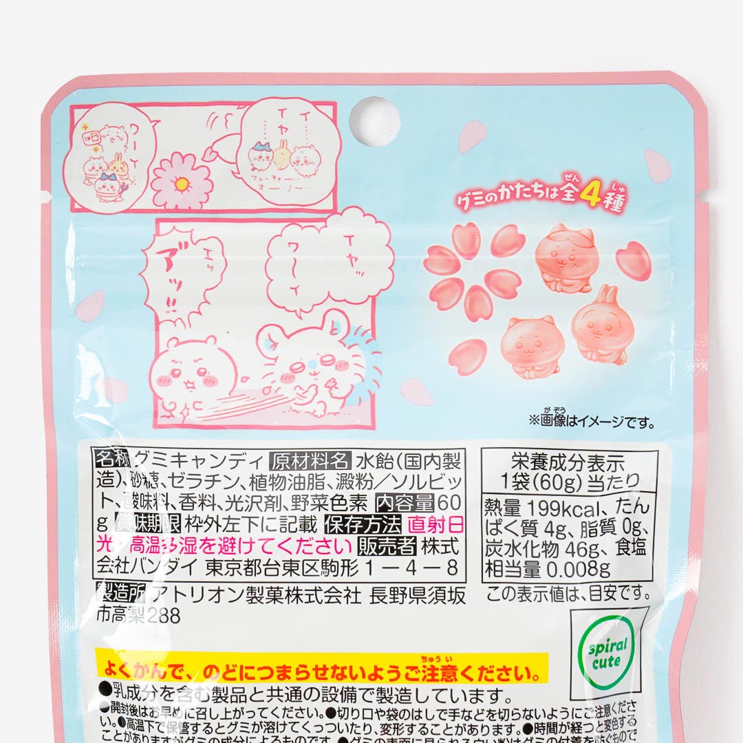 Stash away this pack of peach-flavored gummies in your candy bin! These gummies are shaped like flower petals and characters from the anime Chiikawa. You can use the petal gummies to do flower fortune-telling.
