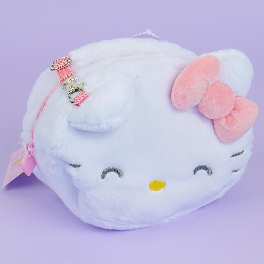 Carry around Hello Kitty wherever you go with this kawaii zippered sling bag! It features Hello's kitty's face with pop-out ears and a ribbon with her embroidered name at the back.