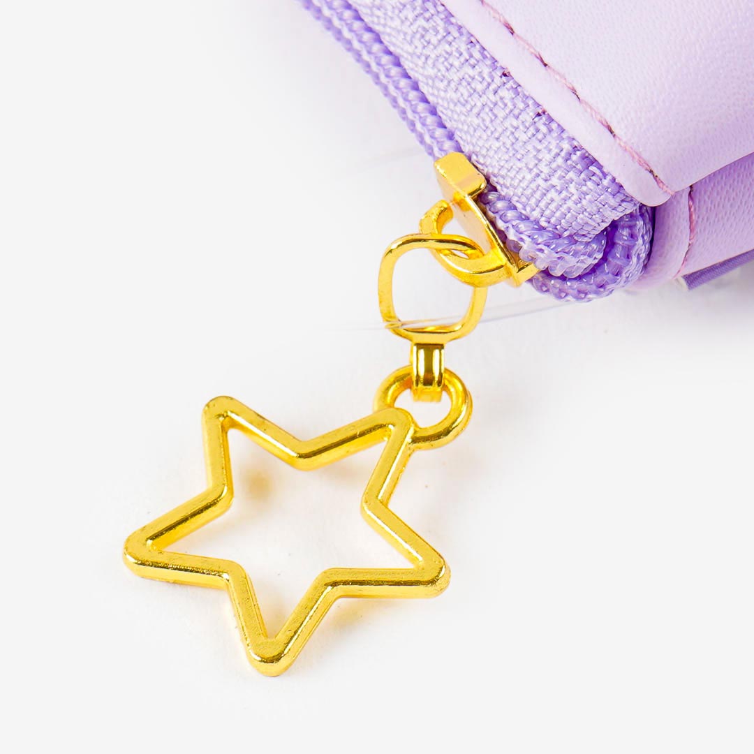 This super cute slim pencil case is illustrated with a golden Kuromi holding a Baku-shaped ice cream! It has a golden star charm on its zipper. Use it to organize your pens, markers, and other writing tools.