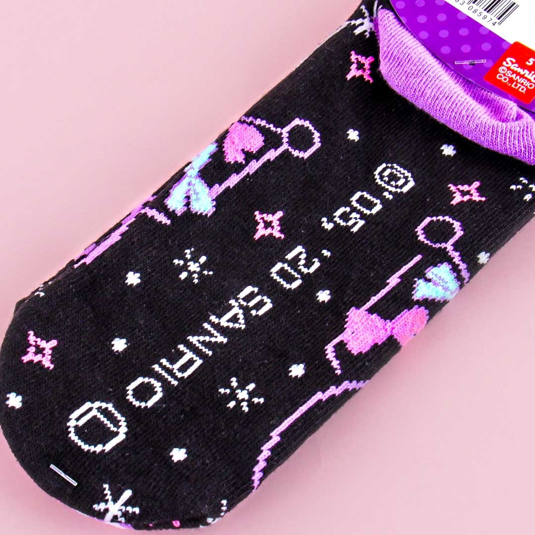 This kawaii pair of socks are made of soft cotton material and features Kuromi the punk rock bunny with twinkling midnight stars. Add a touch of gothic lolita to your outfit by wearing these cute socks!