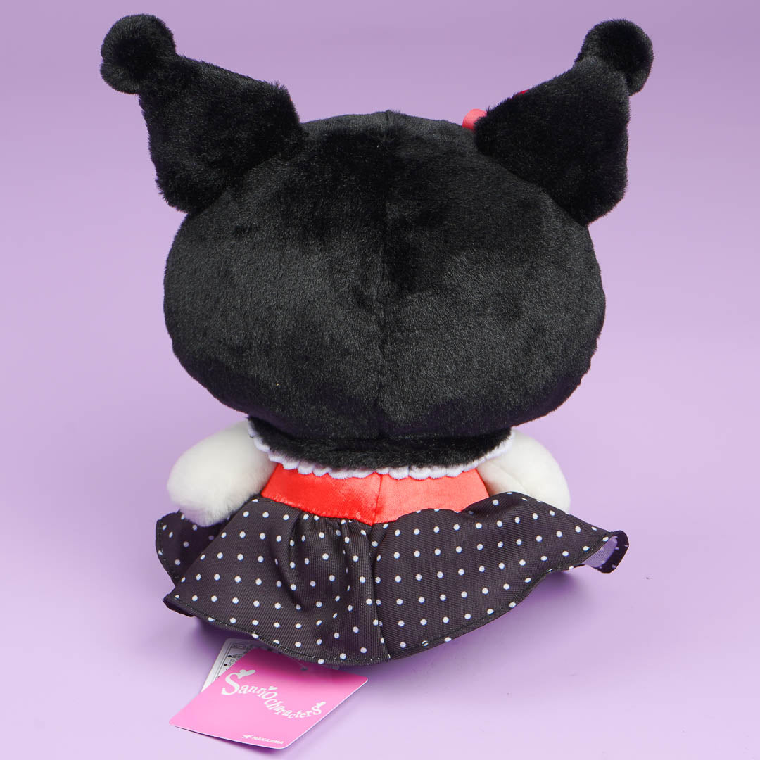 Snuggle with this cute medium-sized Kuromi plushie! The kawaii character is wearing a retro outfit inspired by Little Red Riding Hood.