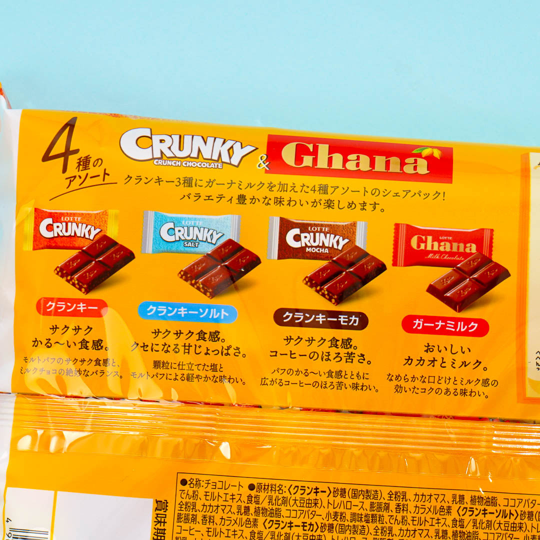Hide this pack of chocolate in your candy cabinet for sugar emergencies. It has four different types of Crunky and Ghana chocolate for you to enjoy. The pack has bars of regular Crunk chocolate, Crunky mocha chocolate, Crunky salt chocolate, and Ghana milk chocolate.