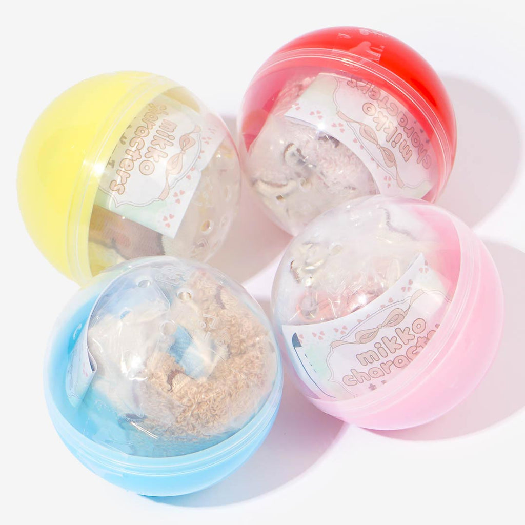 Store coins, charms, and other trinkets in this cute zippered pouch. It showcases a Mikko Character! This fluffy pouch comes in a colorful gachapon capsule.