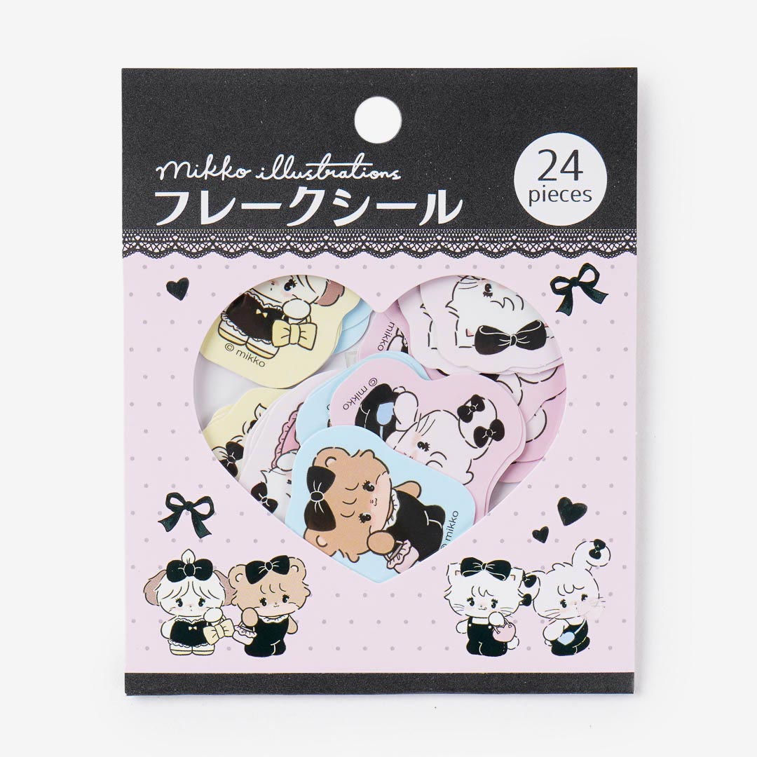 Decorate your desk accessories with these super cute stickers! Each die-cut piece features an illustration of a cute, fluffy animal wearing a black bow.