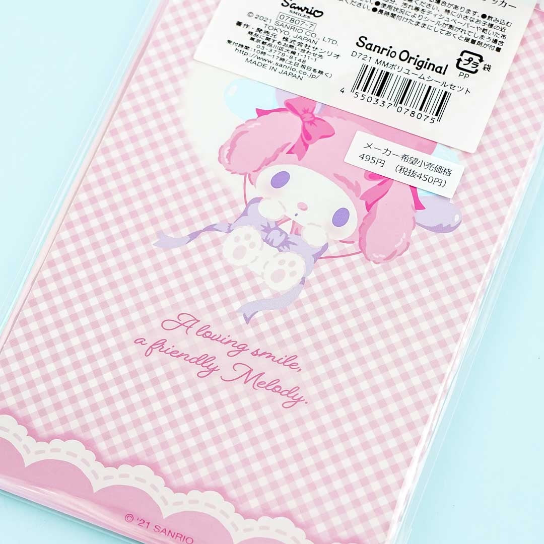 A kawaii set of die-cut deco seals with various illustrations of My Melody having a happy day