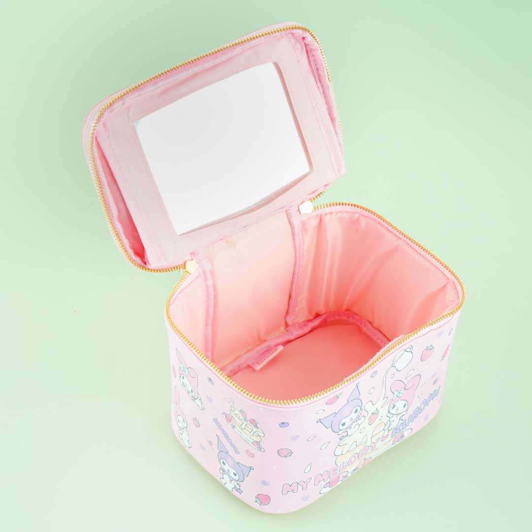 Store your favorite makeup brushes and other tools inside this kawaii vanity case! Its decorated with super cute illustrations of My Melody and Kuromi. This bag also has a convenient mirror thats placed underneath the lid.