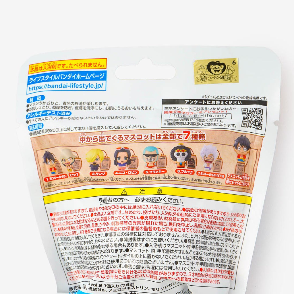 This marine-scented blue bath ball has a hidden secret! Put it in your bath to turn the water blue and watch it melt away. When it's all melted, you'll find yourself a painted One Piece figure.