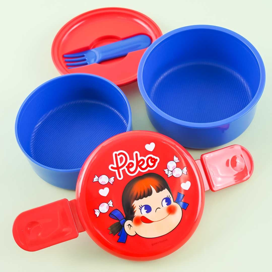 This kawaii lunch box features a print of Milky candy's mascot, Peko-chan! Use it to bring your favorite meals for lunch. It's made of antibacterial material containing silver ions and it has two stackable compartments you can use. You can clean it in the dishwasher. Remember to remove the lid before microwaving your meal in this lunch box!