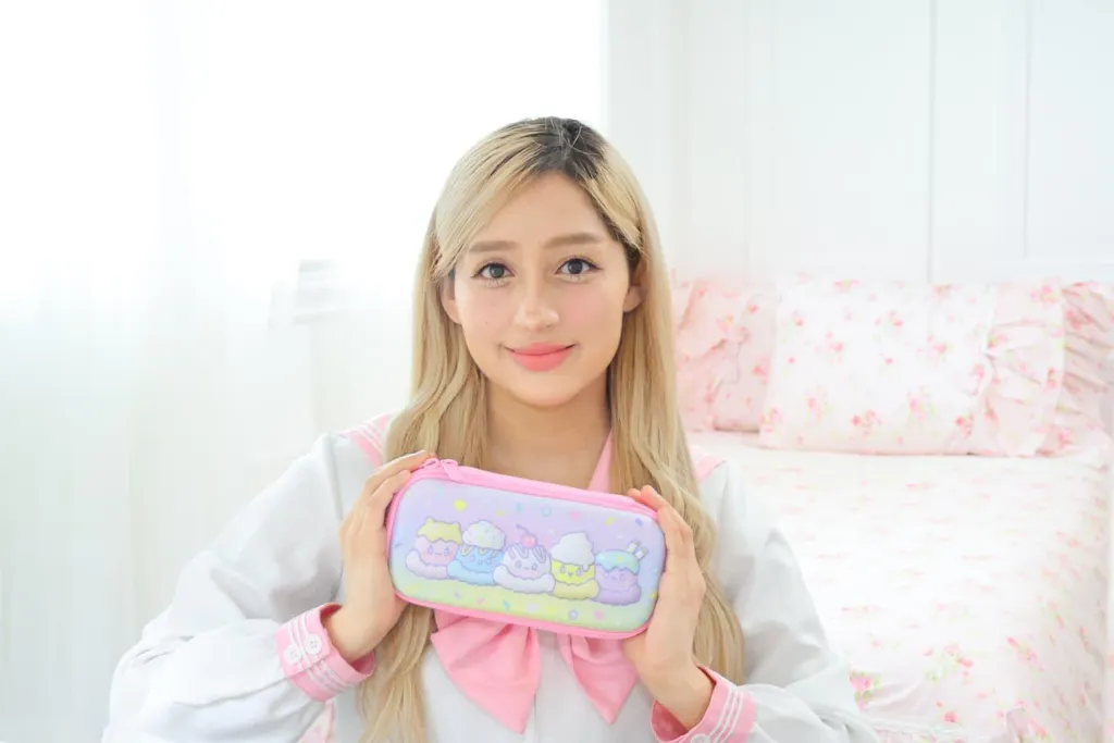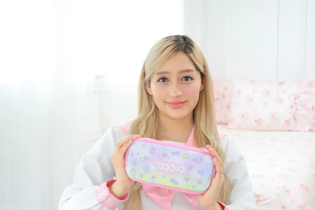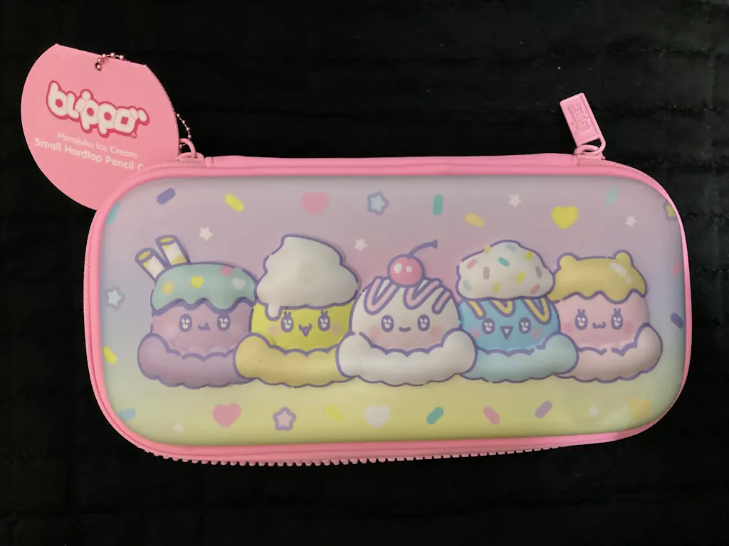 I have been a fan of Blippo for many years now and was so happy to hear they launched their own kawaii products. I got this adorable pencil case and showcased a more detailed review on my YouTube channel Abiアビ― and Instagram @theofficial_abi. There is plenty of space for various pens and pencils, sticky tabs, and a small notebook. It's got a hard outer shell which makes it super sturdy. It works perfectly for my kawaii stationary and style because of how cute it is.