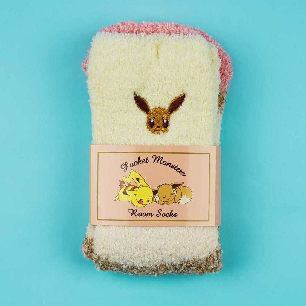 Don't forget to put on these fluffy socks before wearing your shoes! They feature cute embroidery of the adorable Pokemon, Eevee.