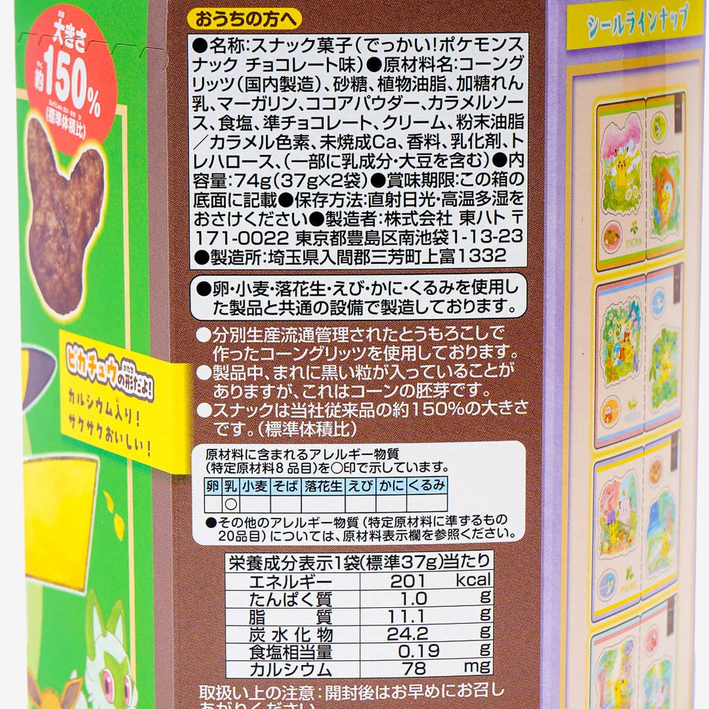 These yummy milk chocolate corn puff snacks are bigger than they normally are! Each piece is shaped just like Pikachu and enhanced with bone-strengthening calcium. Enjoy nibbling on these crispy treats! Try to find the large Pokémon sticker inside the box.
