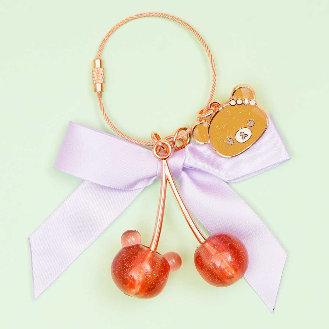 Organize your keys using this super cute keychain. It has a ribbon, a jewel cherry decor, and a Rilakkuma charm! This keychain comes from the Rilakkuma Korikogu Jewel Cherry series.