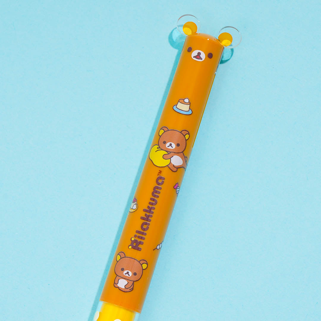 This kawaii mimi pen is decorated with polka dots and prints of Rilakkuma! It has knocks shaped like Rilakkuma's ears on each side so you can switch between two ink colors with ease. Use it when writing your sweet messages!
